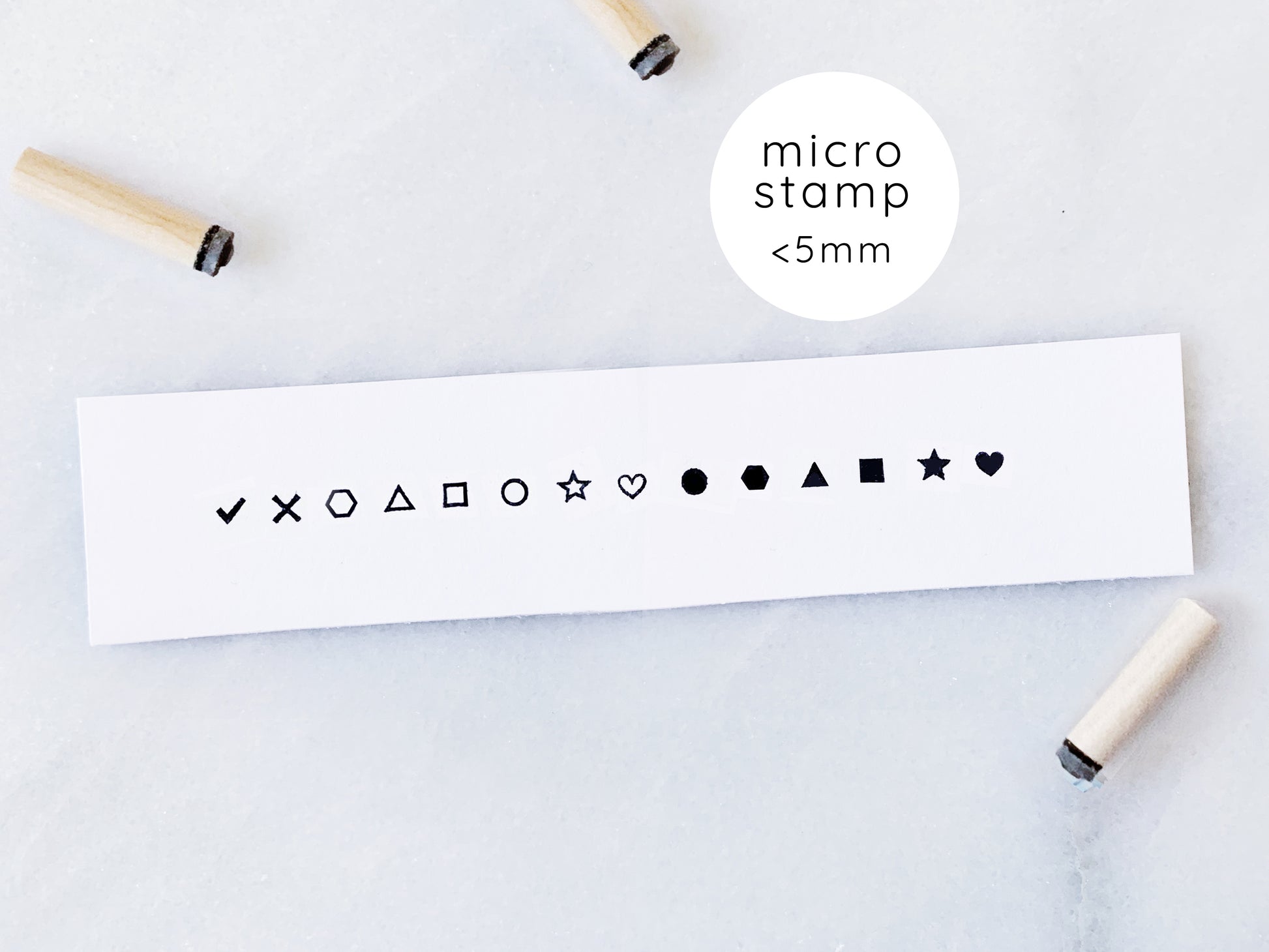 These are MICRO stamps and the stamp impression is approximately 5mm (0.19in) or less in size! They are teeny tiny and give the cutest small stamp impressions. The wooden handle itself is approximately 25mm (1 in) long.